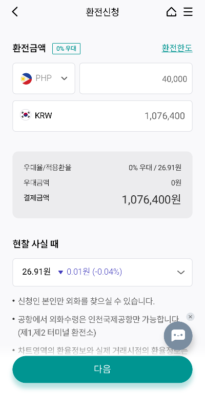 - 필리핀 현지 환전소: 가장 유리 (달러 경유 시)