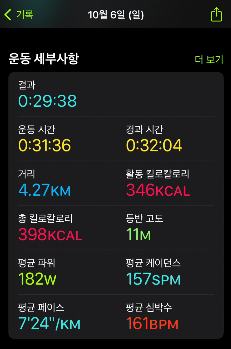 - 수: 인터벌 트레이닝 (2분 빠르게, 1분 천천히 x 10회)