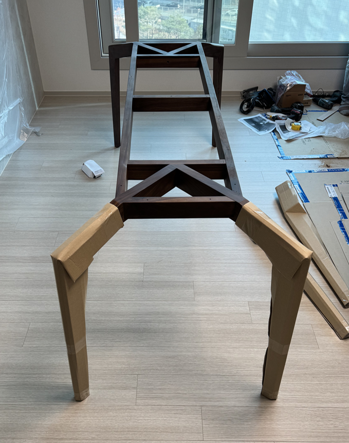 몽키우드 전문 배송팀이 설치를 진행했습니다. 마망 식탁의 특징인 일체형 다리 구조 덕분에 설치가 매우 간단했습니다.