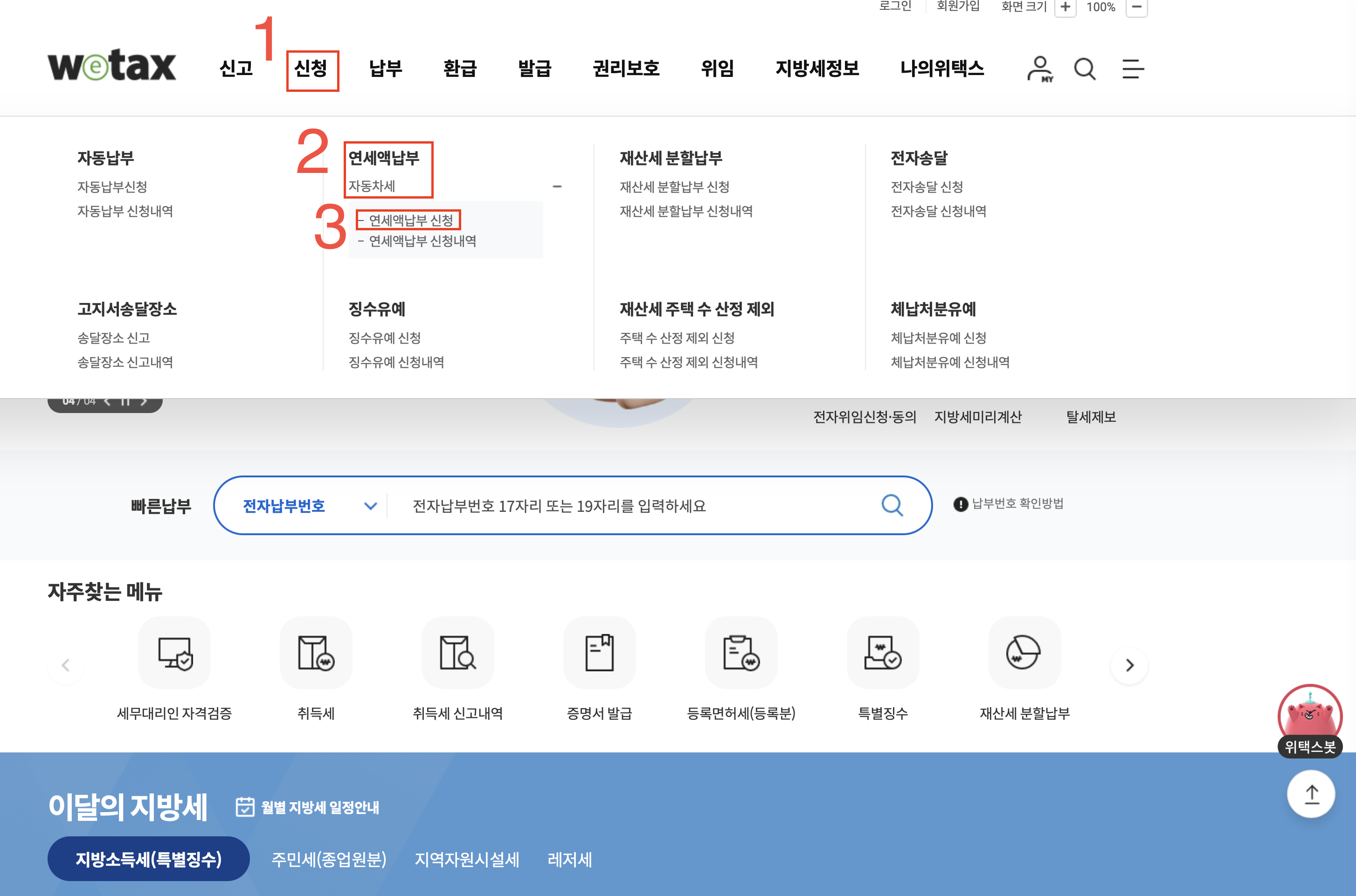 위택스를 통한 연납 신청 절차
