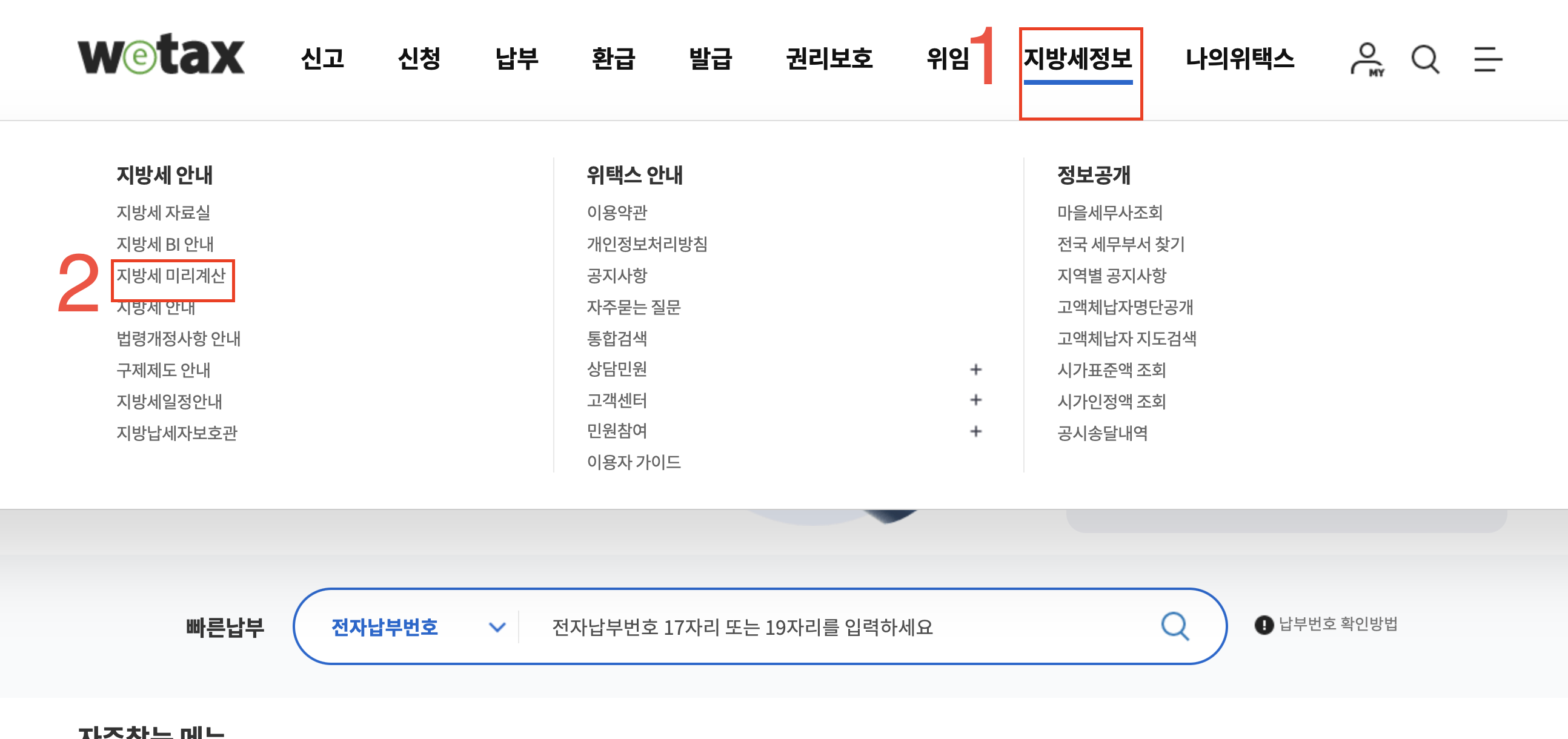 1. 위택스 조회