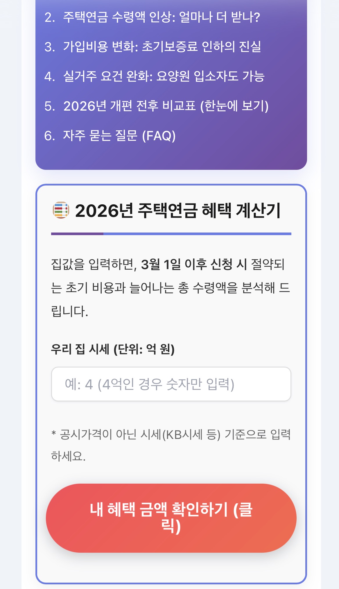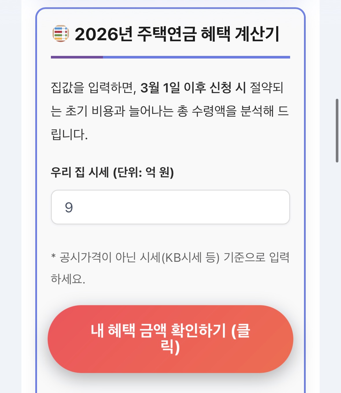 | 주택연금 수령액 계산, 2026년 개편 기준으로 3초 만에 조회하는 법 (0) | 2026.02.10 |