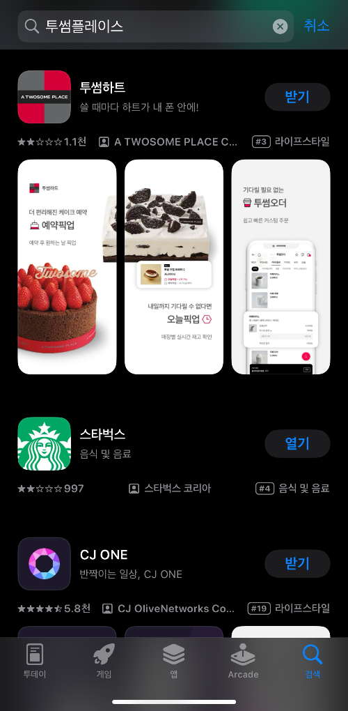 1. 앱 스토어에어서 투썸플레이스 앱(투썸하트)을 설치해 주세요. 전 IOS 기준으로 설명드릴게요. 방법은 똑같아요!