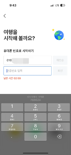 실명인증은 꼭 유심등록 후 진행해 주세요. 그렇지 않으면 인증에 화면에서 멈추게 됩니다.