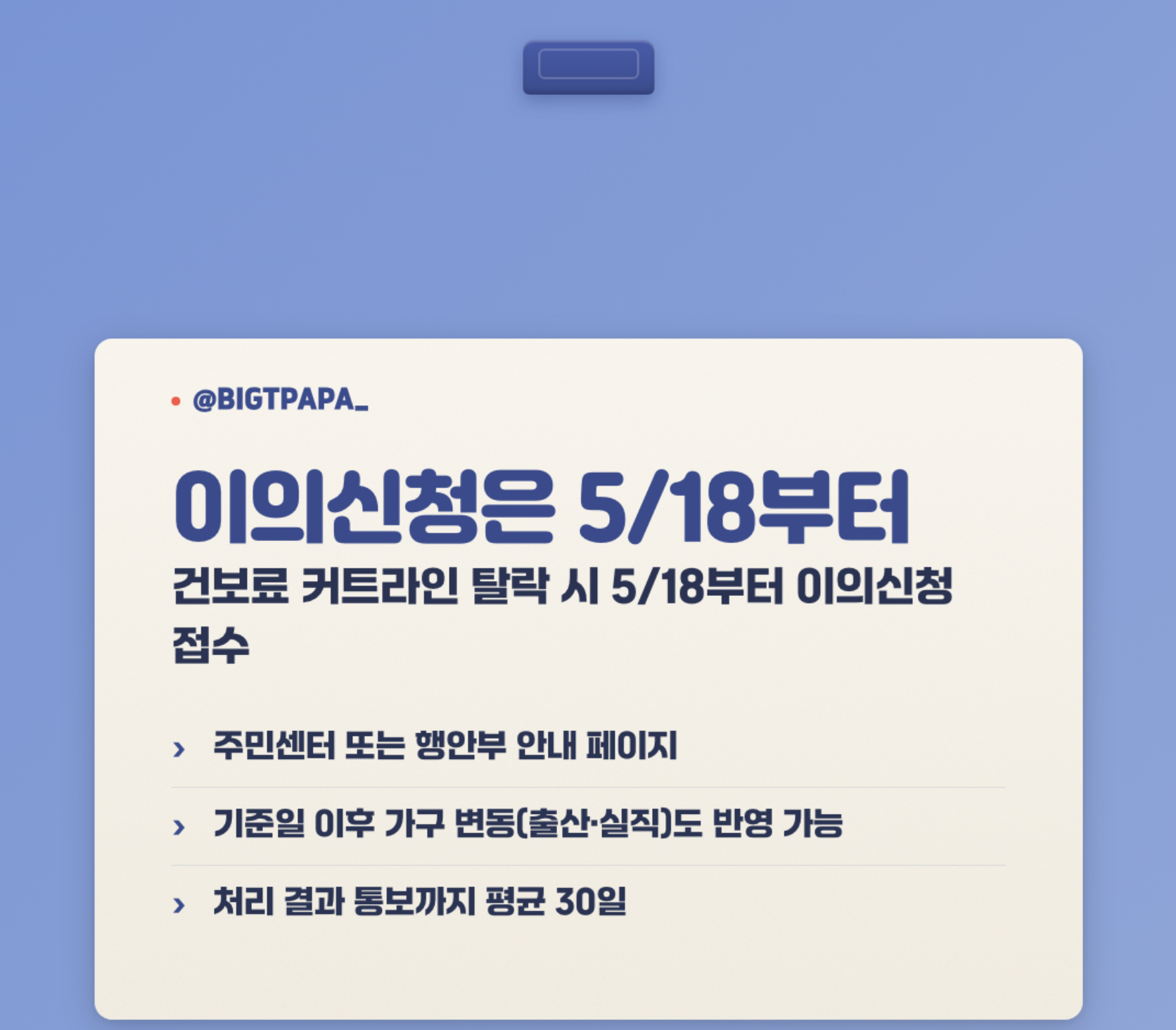 5월 18일부터는 1차 자동 반영에서 누락된 가구를 위한 이의신청도 함께 접수됩니다. 기준일 이후 출산·실직 등 가구 변동이 발생한 경우에도 반영이 가능하며, 처리 결과 통보까지 평균 30일이 소요됩니다. 주민센터 방문 또는 행정안전부 안내 페이지를 통해 접수할 수 있습니다.
