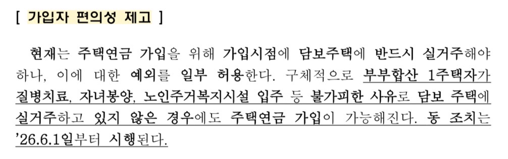 지금까지 주택연금 가입조건의 최대 걸림돌은 "반드시 그 집에 살아야 한다(주민등록+실거주)"는 것이었습니다. 이 때문에 요양원에 가시게 되면 연금이 끊길까 봐 걱정이 많으셨죠.