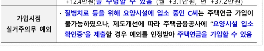 • 변경: 질병 치료(요양원), 자녀 봉양, 시설 입소 등의 사유가 있다면 실거주 예외 인정!